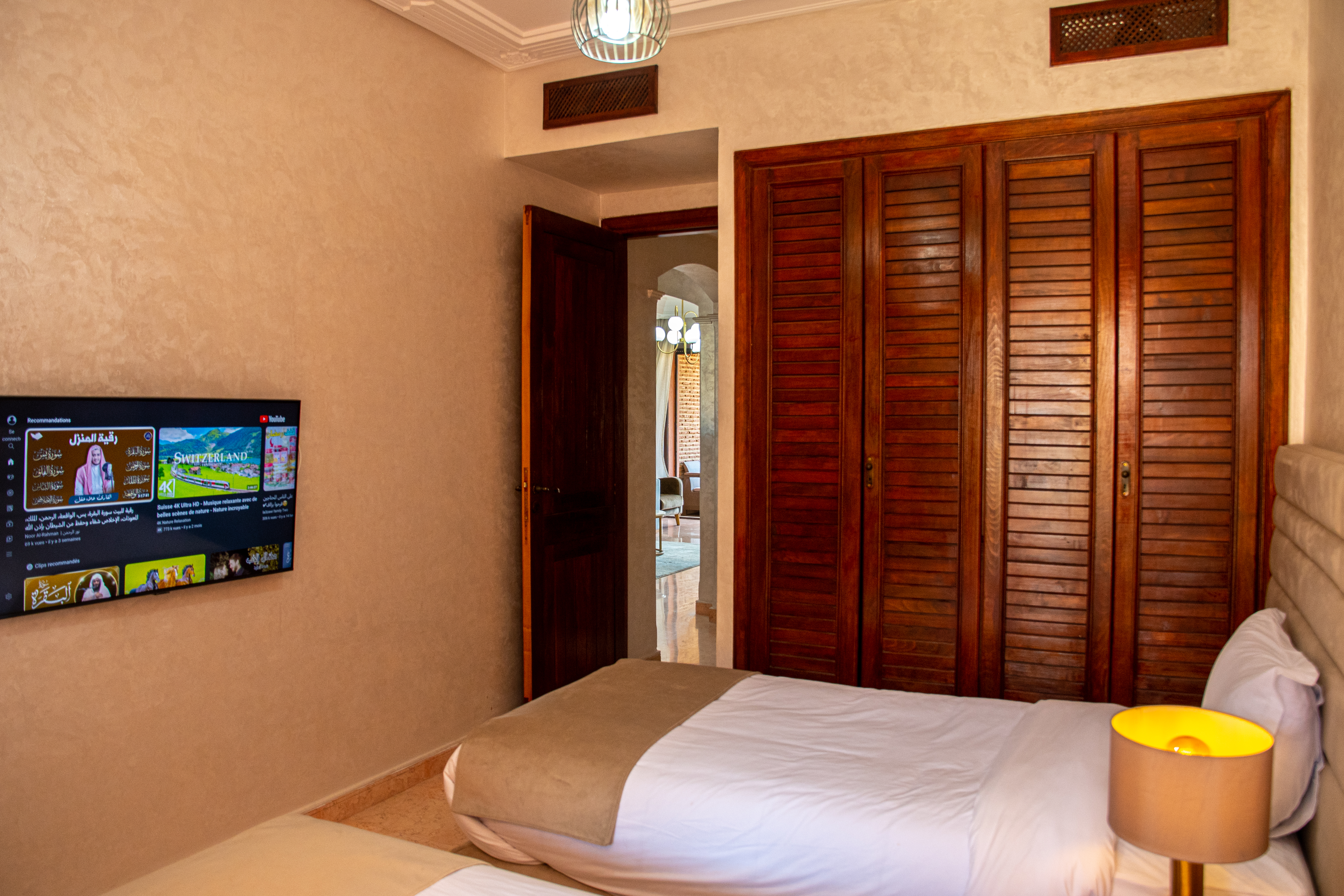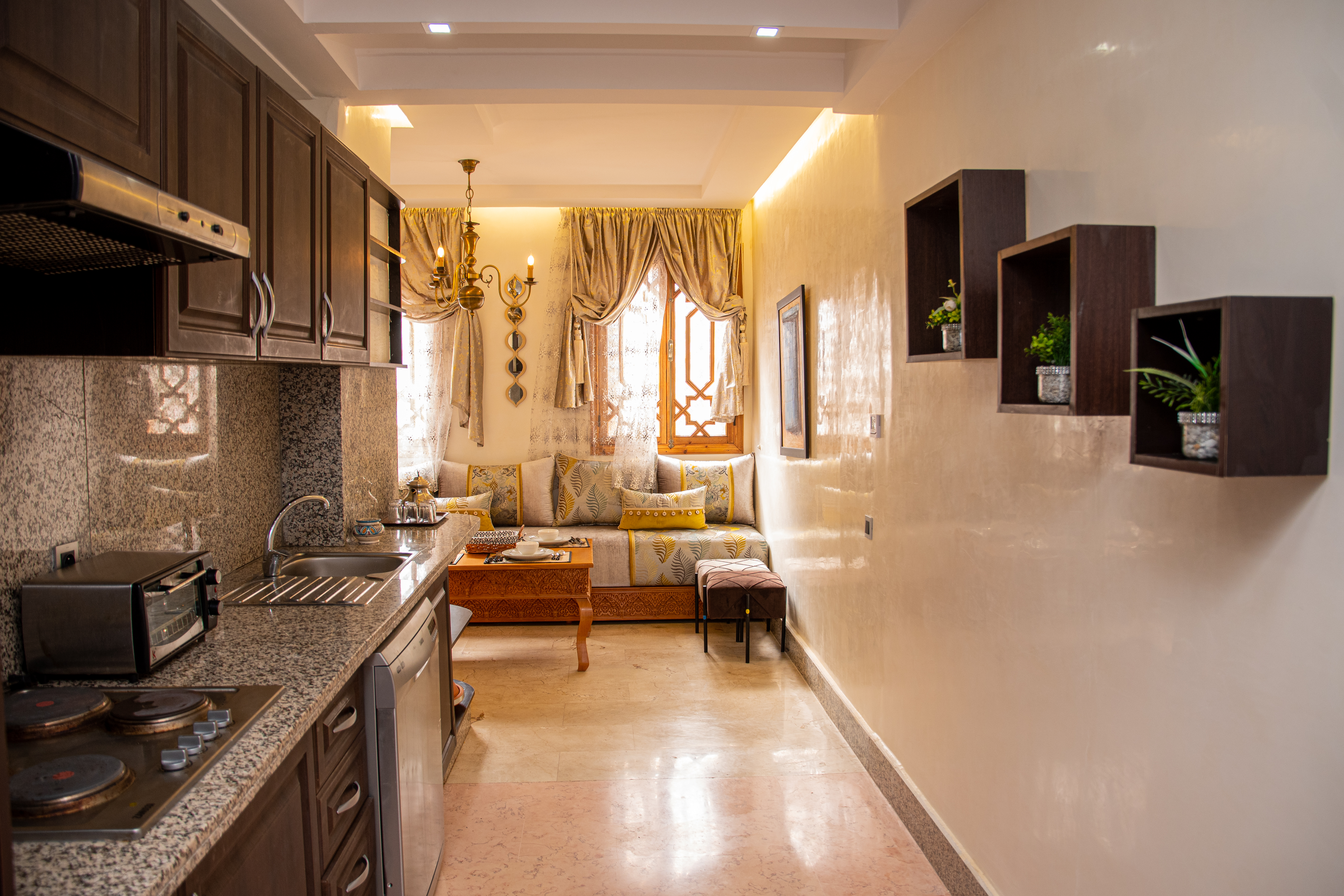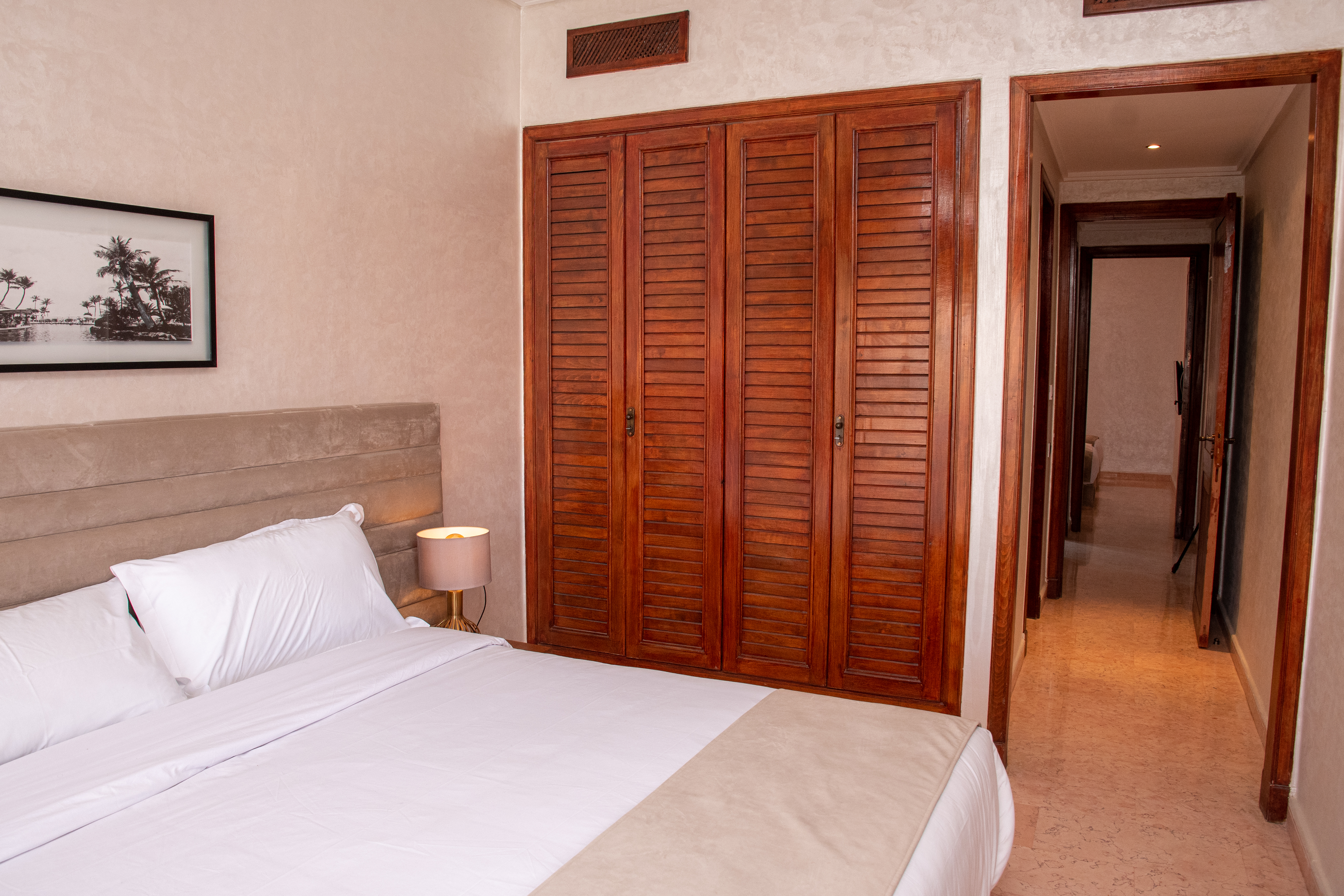 Tous les appartements Atlas darna Marrakesh aménagé May 2022 et sont munis de la climatisation centralisée; Ascenseur , Cheminée, sécurité ,salle de sport gratuit,parking au sous sol desservi par ascenseur ;placards aménagés;cuisine équipé.